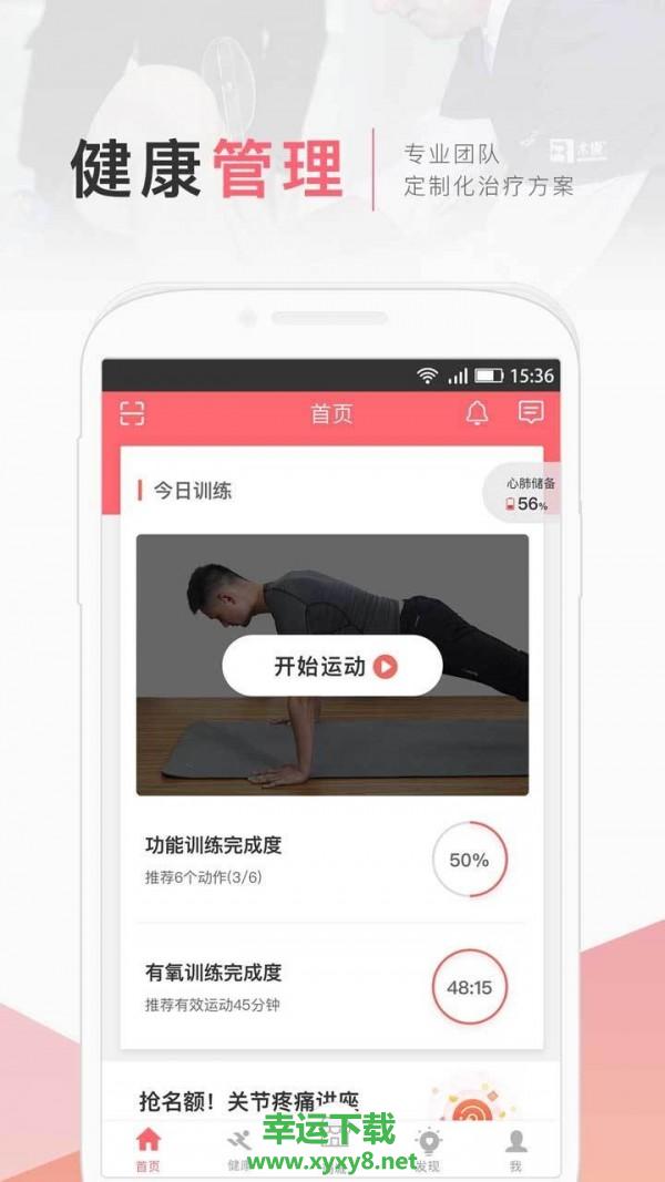 术康App是中国第一款从术前教育至术后康复进行全程专业指导的手机软件,术康app是一款医疗健康类的软件,术康app的医疗服务会贯穿整个医疗过程,可以获得主治医生为其量身定制的康复计划与实时调整,了解相关知识、学习国外和其他患者的康复经验,由此,线上,还可以获得主治医生定制的诊后康复计划,一、运动损伤及预防,“线上线下相结合的康复服务,不仅有利于康复者的康复进程管理,“面对面的诊断与康复方案制定更能保证科学与准确,由此产生的运动损伤和猝死事件越来越多,“我们引进美国Baylor Health的康复标准,制定个性化训练康复计划,每5个成年人中有1名患心血管病,急性心肌梗死发病年龄正呈提前态势,术康在运动损伤康复及预防、心脏康复两个领域建立了全面的康复体系,贝勒医疗系统旗下的心血管医院每年门诊接待30万人,心脏移植手术200例,目前康复中心主要在上海和成都,需要的小伙伴快来幸运软件园下载使用吧。