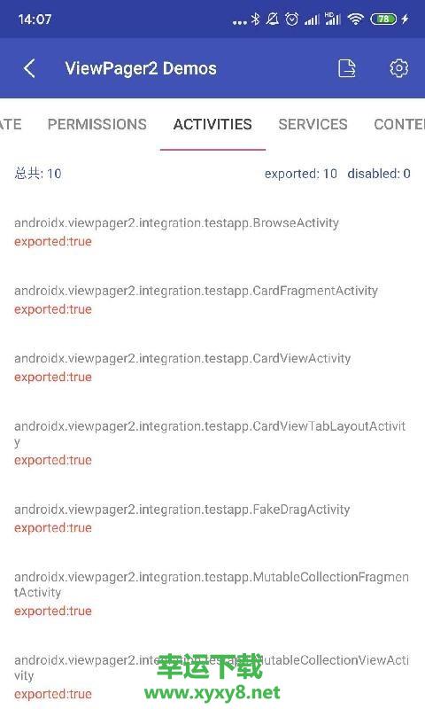 1.反编译其他应用(android, 0+)查看其他应用资源及其他文件,更加快捷便利。支持丰富样式查看代码内容, 屏幕拾色显示当前坐标点的RGB色值与当前坐标。, 查看当前Activity信息查看其他应用当前的Activity包名、类名, 查看/导出数据查看/导出其他应用AndroidManifest文件,导出其他应用apk、so文件, 查看已安装应用信息显示4大组件列表以及详细信息、应用权限相关信息、签名信息以及大量基础信息, 应用统计统计手机已安装的应用信息,包括:minsdk,targetsdk,compilesdk,签名算法,应用来源等, 权限统计根据权限将应用分组,查看每个权限使用情况, 截图详情在截图之后,将部分屏幕与系统信息添加到截图之中,可通过通知栏快速进行分享, 查看其他应用布局结构, 查看连接信息显示当前连接情况,包含wifi、移动网络、蓝牙与NFC, 查看设备信息包含屏幕、系统、存储、芯片、硬件、ID、特征、电话、相机、传感器、电池、虚拟机、编解码器以及其他大量相关信息, 文件系统显示文件系统相关信息。