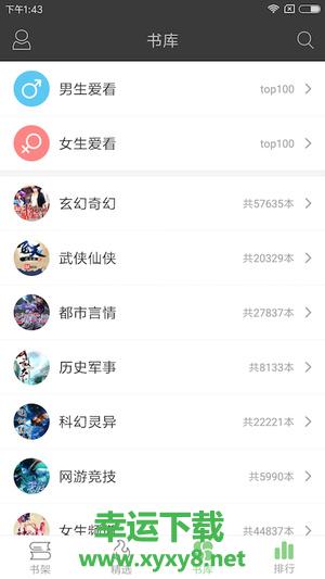 7.自由选择书库的热门小说,多种小说榜单帮您快速发现小说;