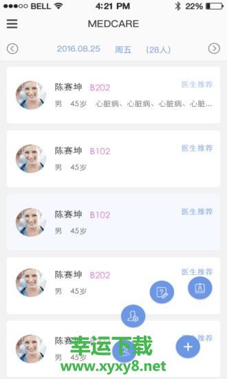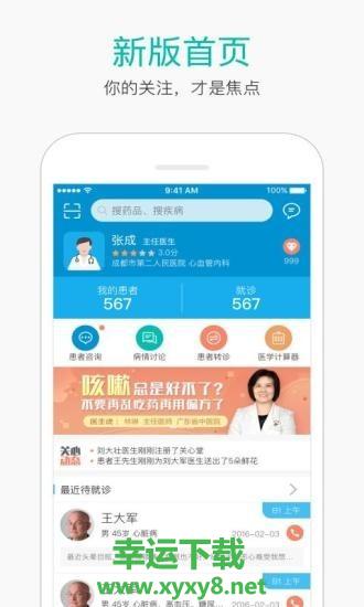 关心堂医生版是一款健康医疗应用,通过关心堂医生版app你可安排坐诊时间、查看当天的预约就诊情况和实时查看/回复患者所提问题等,还能查看自己的每天就诊预约详情,患者咨询,支持随时答复患者疑问;预约查询,一键查询每日预约就诊人数和个人信息;关心堂医生版就诊人数查询,预约人信息齐全一目了然;医生可以安排患者就诊的时间,需要的小伙伴快来幸运软件园下载使用吧。