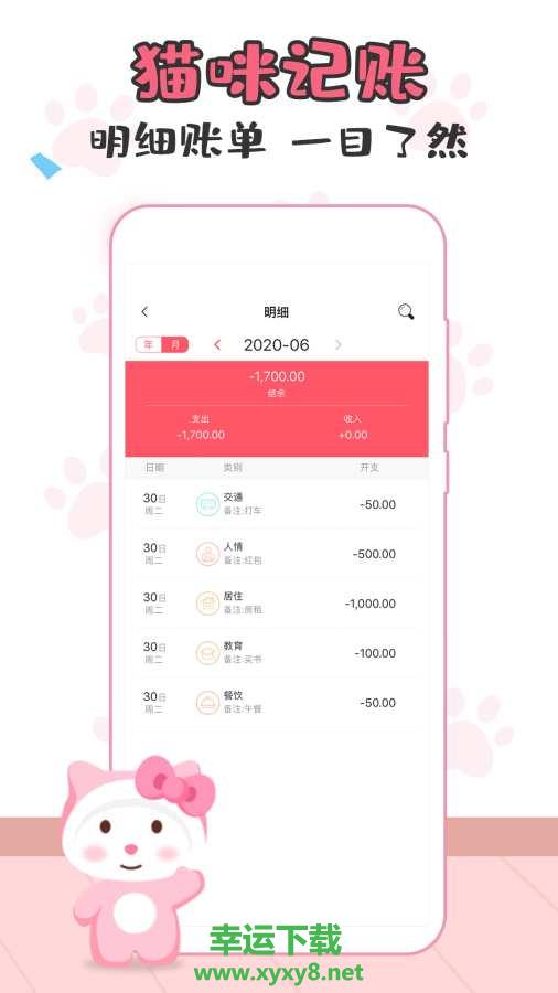 记账软件app是一款手机记账软件,看起来很美观,也非常实用,让你随时随地都可以记账,养成随时理财的好习惯,整合多种记账模式,可多人记账,云端数据备份,数据享银行级保护支持预算功能,每月消费有固定,超支就会提醒您个性皮肤可供选择,限量版节日皮肤,我有我style记账只需3秒,自带多种记账模块,免费无广告数据支撑的折线图、饼状图直观呈现账单百余种精心设计的图标,让记账更添色彩您身边的记账小贴士,专心打理您的财富资产,每月资金流向清晰明了,为您的财富健康保驾护航,让您的财富稳步增长, 花的少点,省的多点,先来记一笔,月末摆脱光光族花的少点,省的多点,先来记一笔,月末摆脱光光族理财、房贷、生意、旅游、生活服务、结婚、出行、车贷等账本应有尽有,供您选择设置预算,监控消费,多种收支数据报表让您省心又省力,助您天天省钱月月有余,需要的小伙伴快来幸运软件园下载使用吧。