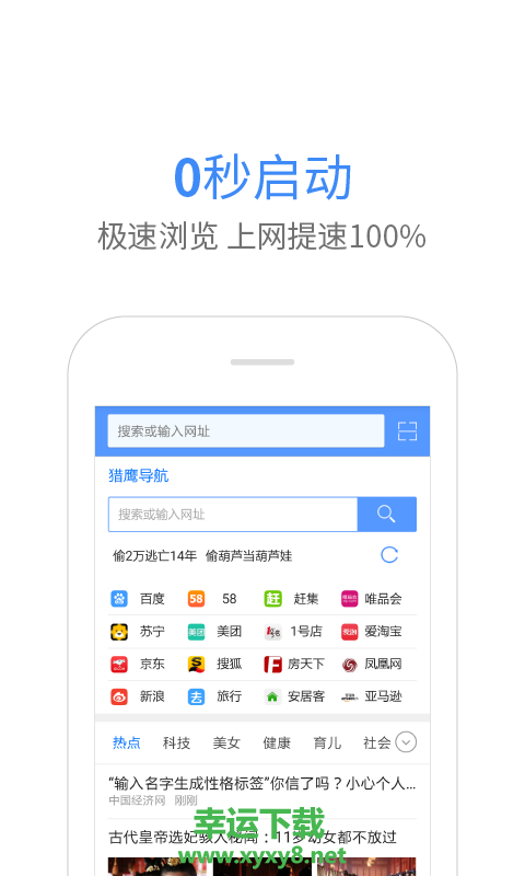 3.猎鹰极速浏览上网提速100%,不足3M安装包极速下载,页面简洁无广告浏览器。