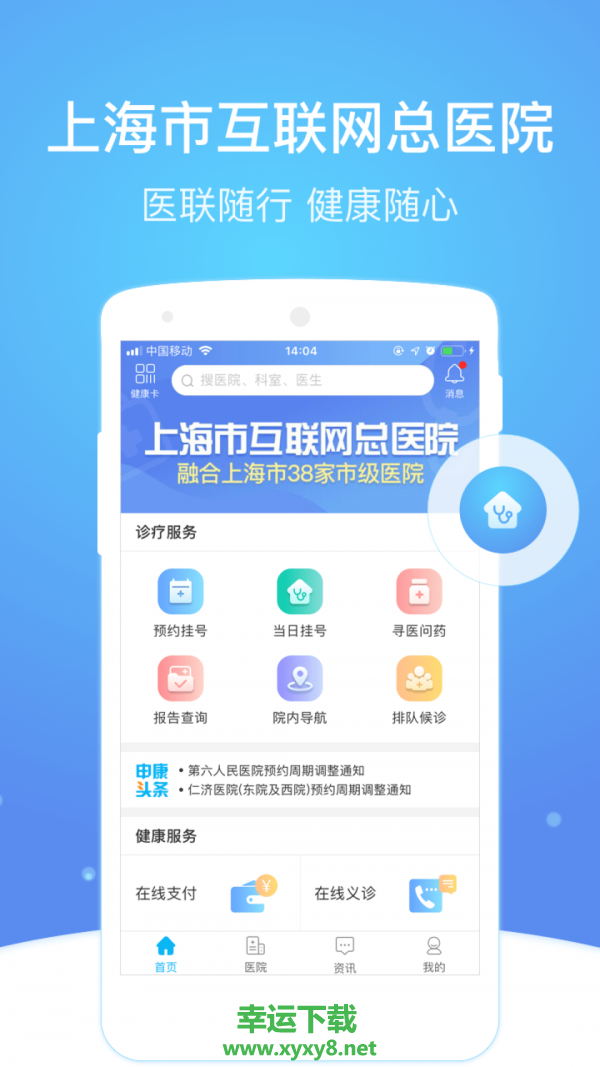 上海市互联网总医院是为患者打造的移动医疗应用,甚至直接在网上问诊,广大民众通过医联云健康即可查询上海市38家三甲医院专家、医联一卡通余额、专病信息并进行自助预约,同时还可查看医院化验及检查报告、各科室排队信息。支持在线挂号预约导航医院和科室上海市互联网总医院健康知识库等等。可以在线咨询医生,让医生根据您的情况,提供合理的建议,需要的小伙伴快来幸运软件园下载使用吧。