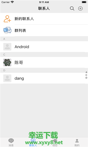 6.消息,展示最近聊天的好友或者群列表,方便查找。可以发送语音、视频、文本消息。