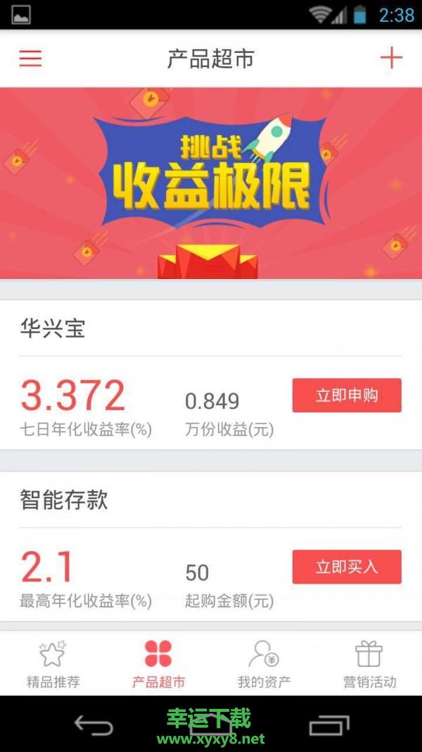 6.推荐精致产品,每日进入首页的时候即可看到热门的精品产品等待用户直接申购;
