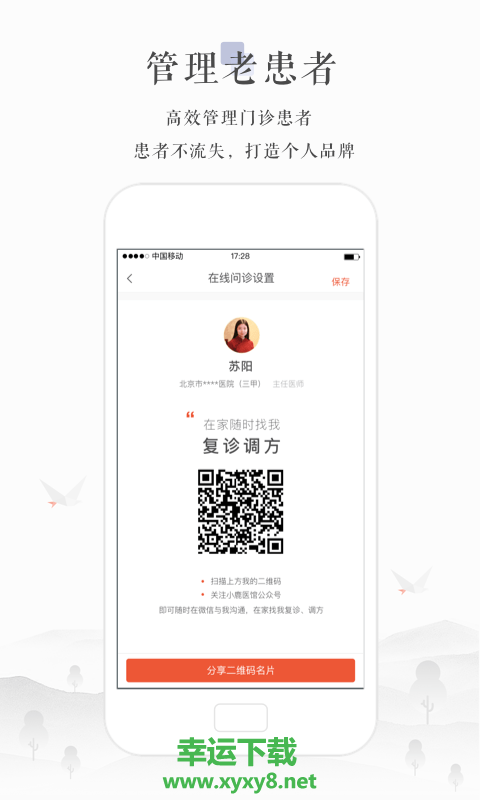 小鹿医生版app是一款为医生打造的医疗管理软件,致力于成为每一位医生口碑打造和传播的好工具, 增加补填问诊单及申请评价功能, 增加患者购买服务及购药提示, 快捷回复增加分组, 咨询及通讯录增加分页加载, 修复其它 bug本站提供最新版小鹿医生版,小鹿医生版app由北京紫宸正阳科技有限公司开发,提供在线执医和管理服务,可以有效地帮助医生线上行医,医治更多的患者和病人;医生可以在线接取患者的订单,在与患者进行沟通交流后为患者开具处方,系在线接取患者订单,为患者诊治病情;根据患者病情开具处方,点击提交;分享二维码名片,添加患者为好友;设置问诊项目,调整医馆行医方式;在线与患者沟通,使用语音、视频等方式;国内唯一合法执医平台,获得阳光收益;专业在线问诊,精准辩证开方;高效管理门诊患者,打造个人品牌;自定义个人医馆,自主选择接诊方式;上班时间自定义,自由控制免打扰时段,需要的小伙伴快来幸运软件园下载使用吧。