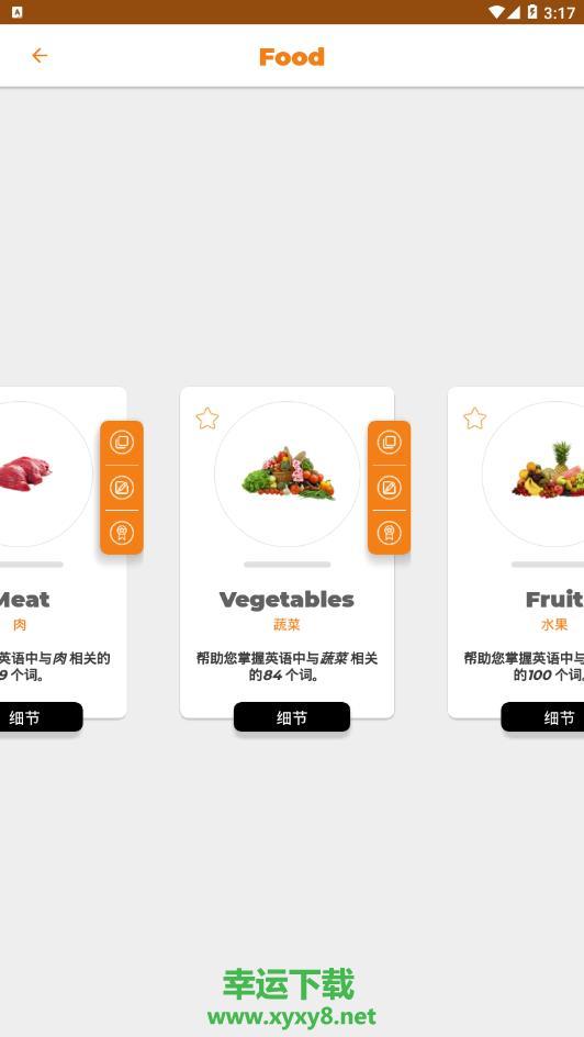 6.英语通通包括我要学习和考考你二个模块,适合小孩子幼教。我要学习中包括常见的几十种水果如苹果,香蕉,杨桃,樱桃,葡萄等等。考考你中将常见的水果随机出现,锻炼小孩子的记忆能力。