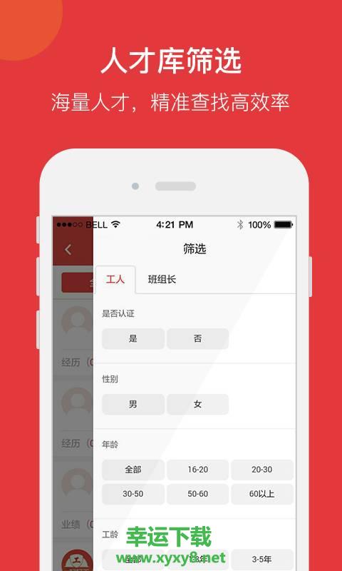 4.招工管理:支持班组长和安装公司发布招工信息,工人或班组长在线报名;用工方也可以自主从人才库中挑选工人或班组长,支持安装公司开通日常招工功能。