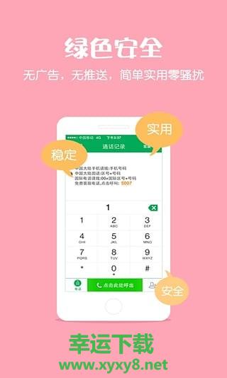 有话通网络电话是有话筒网络电话的PAD版,首次注册的用户提供60分钟的免费通话,夜间,00-,00和每月7号狂欢日国内电话完全免费;有话通网络电话无SIM卡照样打电话,Android/iPhone/iPad共享通讯录,方便、快捷,从此小伙伴们永不丢失;国内不分长短途一个价,节省话费高达90%;支持去电显号功能,让您更有面子,需要的小伙伴快来幸运软件园下载使用吧。