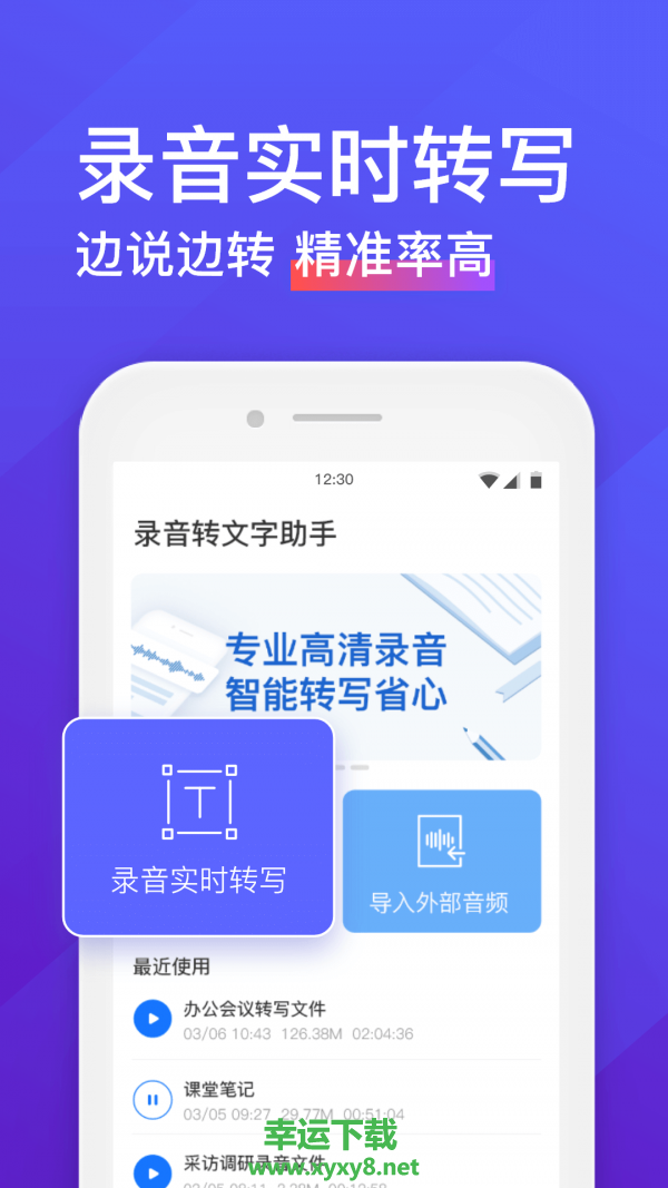 1.支持外部音频导入app,简单操作,快速识别,准确率高