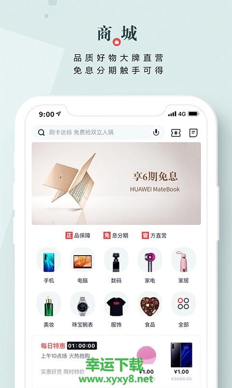 2.吃喝玩乐必备神器:聚合饭票、影票、小招喵品牌馆、积分礼遇、高端专享和天天福利等板块,新增掌上管家和领券中心。吃喝玩乐一网打尽,福利优惠一手掌握。