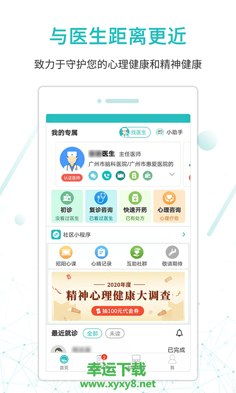 2., 首页专属医生展示优化。 守候用户的心理健康和精神健康,为用户提供贴心的服务;