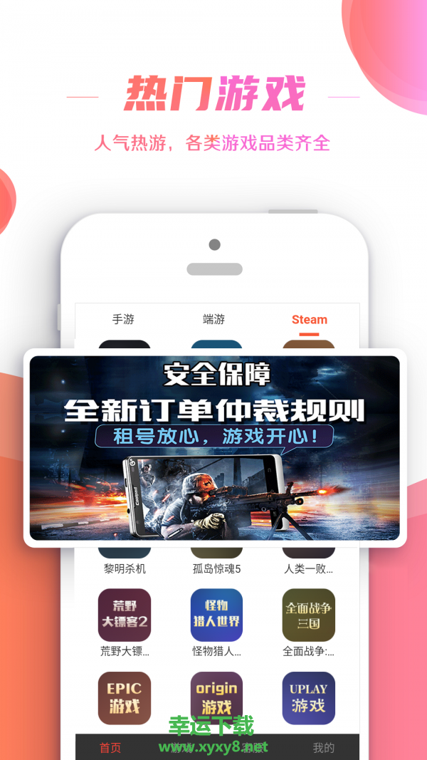 5.热门游戏:游戏品类齐全,手游、端游、steam游戏等主流人气热门游戏。